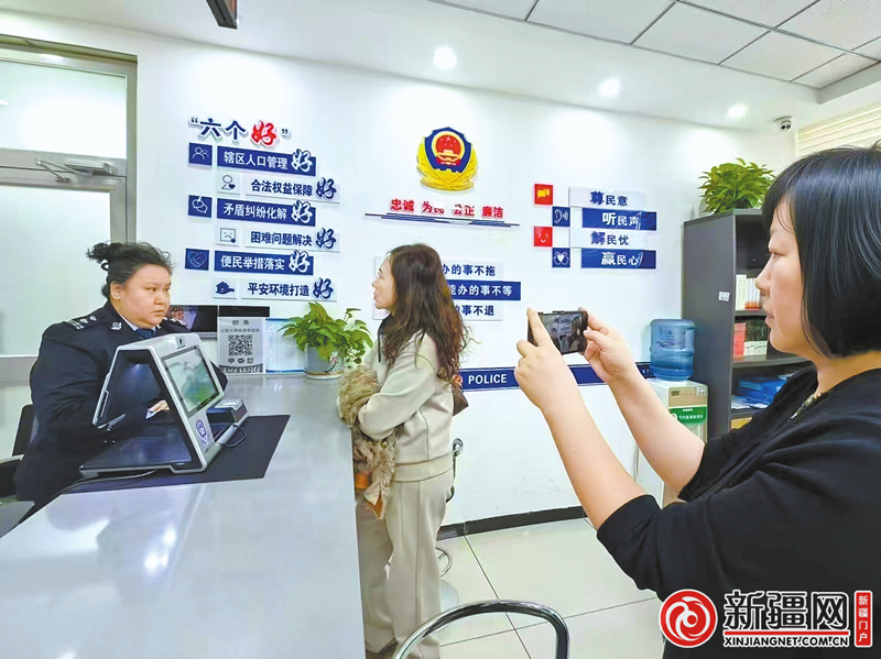 13时10分,在扬子江路街道派出所公安综合服务窗口,记者看到窗口民警帕提曼·阿不力米提正在接待市民马依努尔·库尔班和她6岁的儿子。
