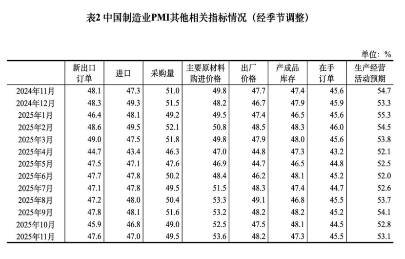 原材料库存指数为47.3%,与上月持平,低于临界点,表明制造业主要原材料库存量继续减少。